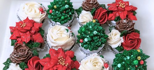 Celebrate the season with a curated box of artisan holiday cupcakes unlike any store-bought dessert. Each dozen includes Christmas trees, poinsettias, winter rosettes, and pinecones, all finished with pearl sprinkles and a touch of sparkle. A beautiful, ready-to-serve treat for holiday gatherings, gifts, or parties.